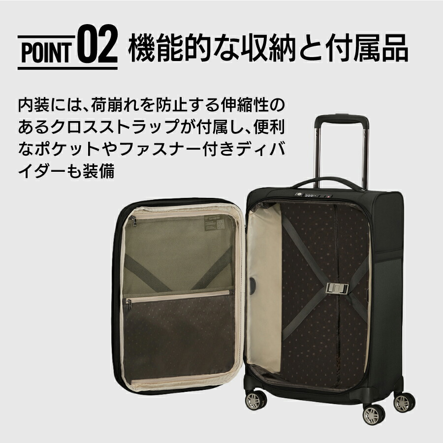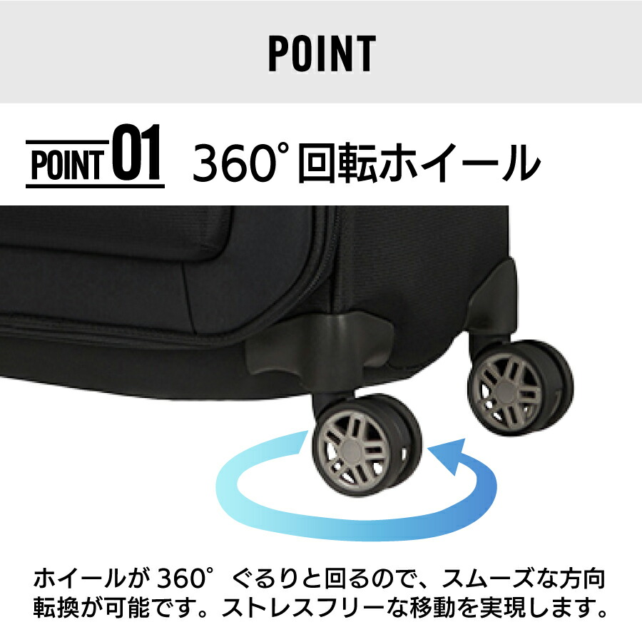 360度スムーズに動くキャスターと、荷崩れを防ぐ機能的な内装。旅先でのちょっとしたストレスをなくしてくれる、大人旅に嬉しい機能が詰まっています。