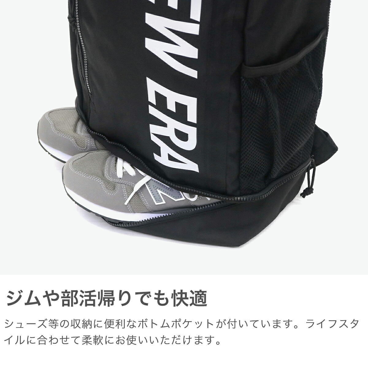 シューズ等の収納に便利なボトムポケット