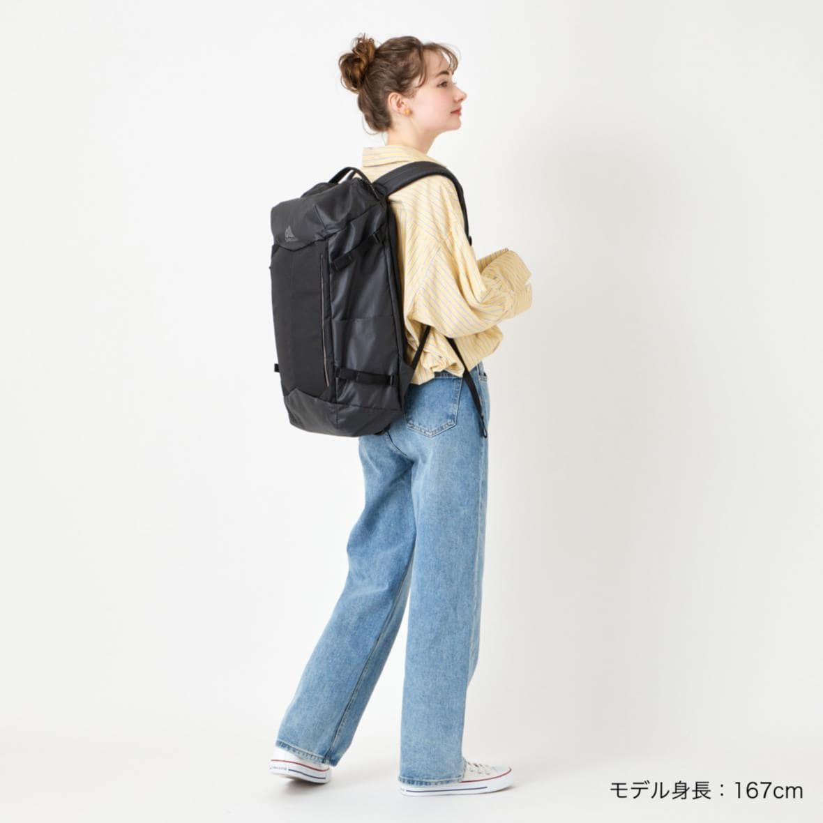 グレゴリーコンパス30は、身長150〜165cm前後の女性でも背中にフィットしやすいサイズです。30Lの容量がありながら、見た目はスリムでコンパクトに見えるため、荷物が多めでもすっきり背負えます。